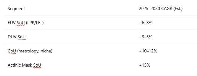 Still, if FELs hit 500W+ with 95% uptime and fab-friendly size by 2027–28, ASML could be forced to consider them—either via partnership or acquisition.