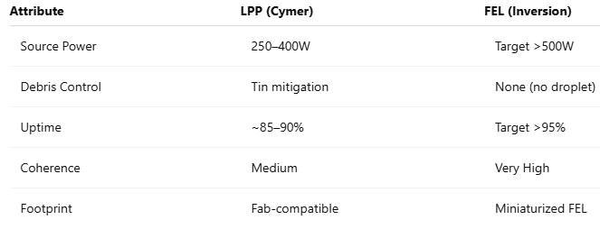 id integration take center stage, light sources must evolve from brute force power to precision, coherence, and uptime. If Inversion or a peer succeeds in delivering a compact, fab-ready FEL with stable 500W+ output, the EUV landscape—and ASML’s monopoly—could shift dramatically.